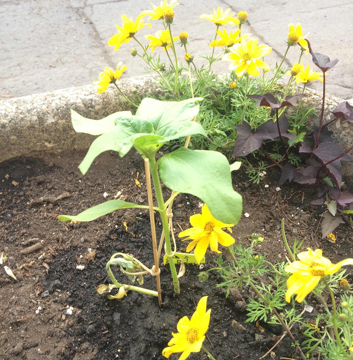 Des 100 tournesols plantés en mars, seulement 25 ont survécu leur transplantation dans le quartier, et une infime partie de ceux-ci ont réussi à produire une fleur.