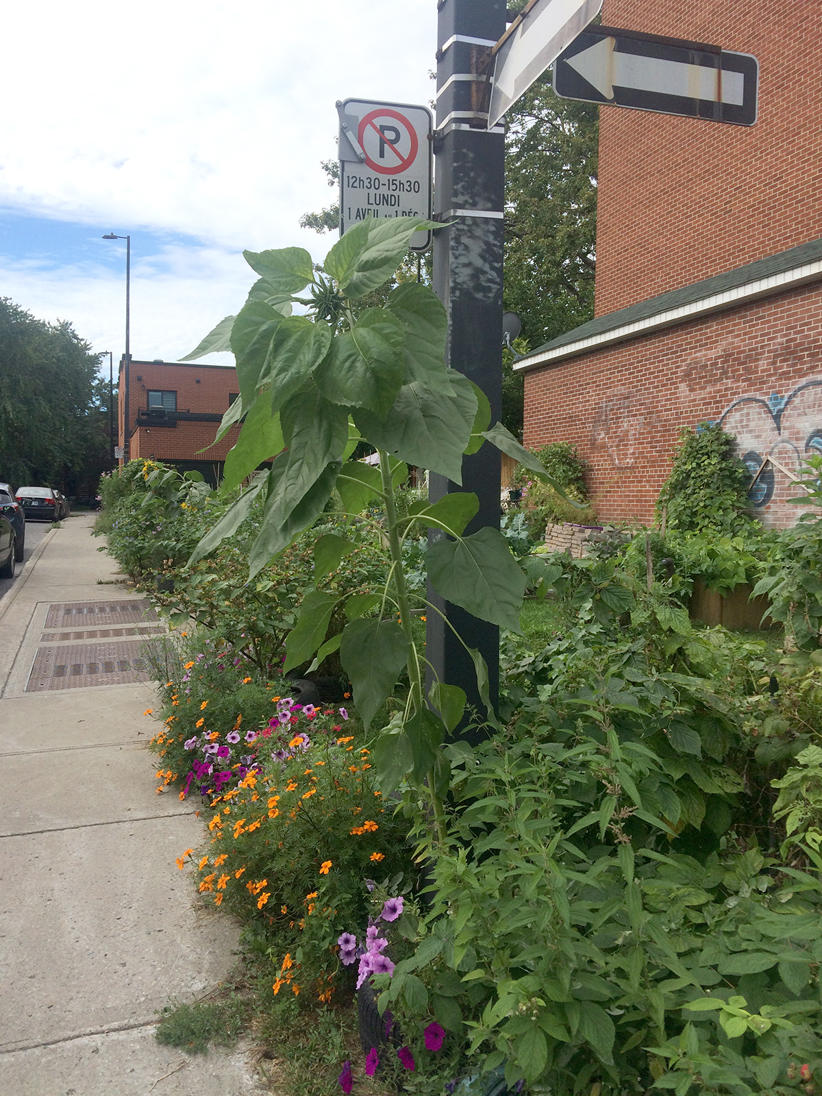 Sur notre balcon ; dans une ruelle verte ; dans les aménagements floraux des voisins ; au coin d’un arrêt d’autobus ; sur le bord de l’autoroute Notre-Dame ; dans un jardin communautaire ; dans une plate-bande municipale ; dans la plate-bande d’un restaurant ; ainsi qu’à plusieurs endroits dans un terrain industriel désaffecté près de chez nous.