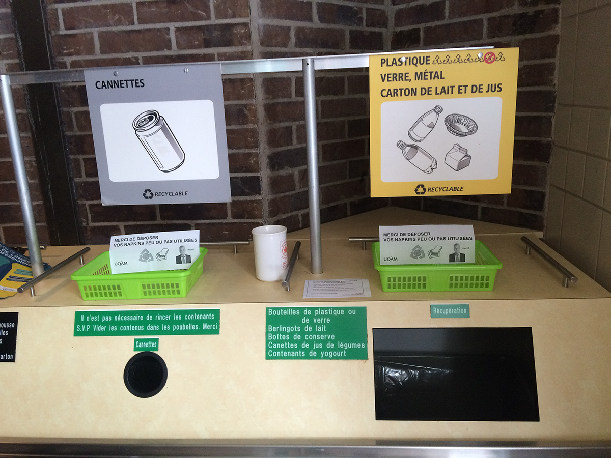 Alors qu’ils étaient employés de l’université, MeyerMetivier ont été invités par le syndicat des employés à produire une manoeuvre de perturbation dans le cadre des portes ouvertes de leur université. Cherchant à ternir l’image de l’établissement aux yeux des visiteurs venus pour la journé, les paniers de MeyerMetivier ont été déposés près des aires de tri dans la cafétéria de l’université afin de faire croire aux visiteurs que des mesures d’austérité drastiques étaient à l’oeuvre dans l’établissement. En demandant aux usagers de recycler leurs serviettes «peu ou pas utilisées» après leur repas, la manoeuvre de MeyerMetivier questionnait la valeur potentielle d’un objet ayant peu ou pas servi, dans un milieu académique se disant ouvert au progrès, et sensible à la cause environnementale. À la surprise des artistes, les paniers sont restés durant toute la session d’hiver, entretenus par une équipe de bénévoles anonymes. Vers la fin de la session, les caissières de la cafétéria s’étaient appropriées les paniers, dans lesquels elles déposent désormais les reçus de ventes que leurs clients refusent.