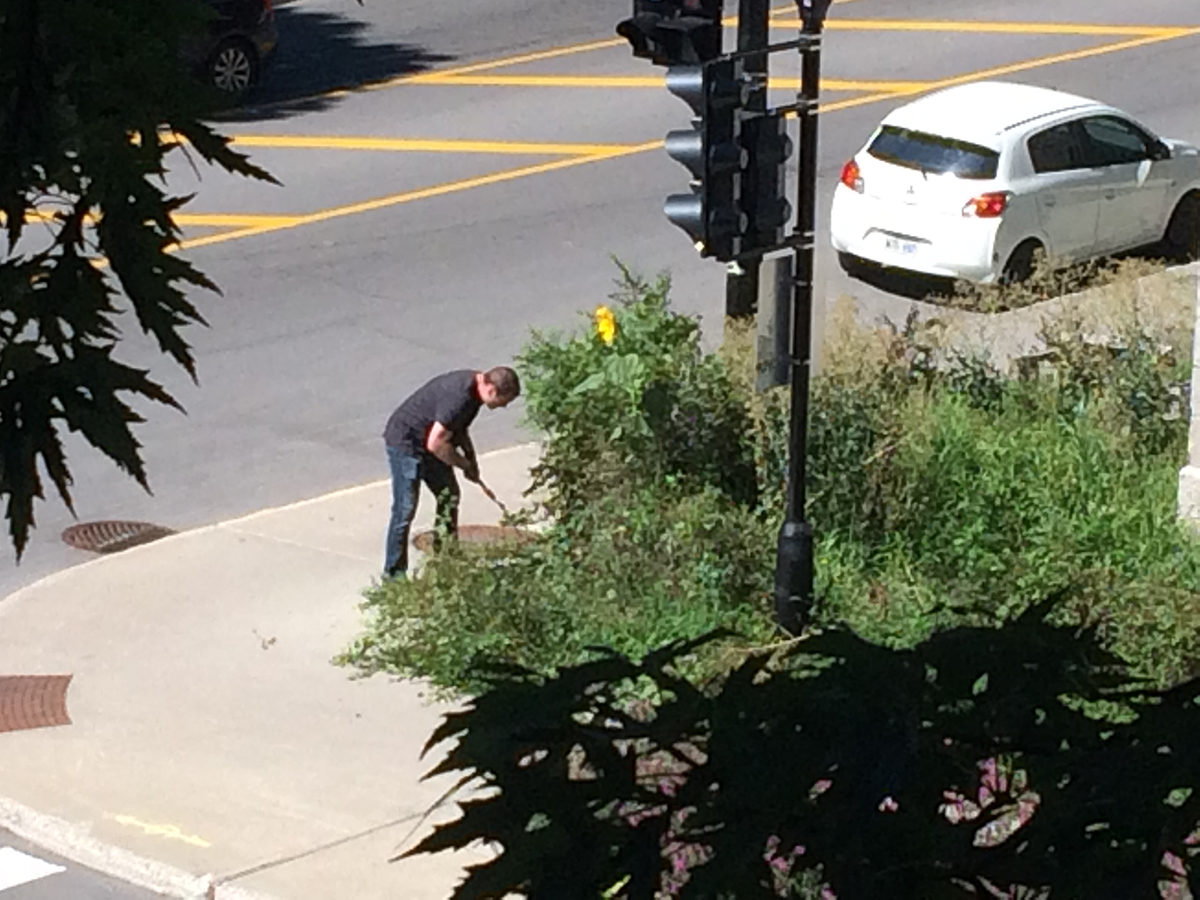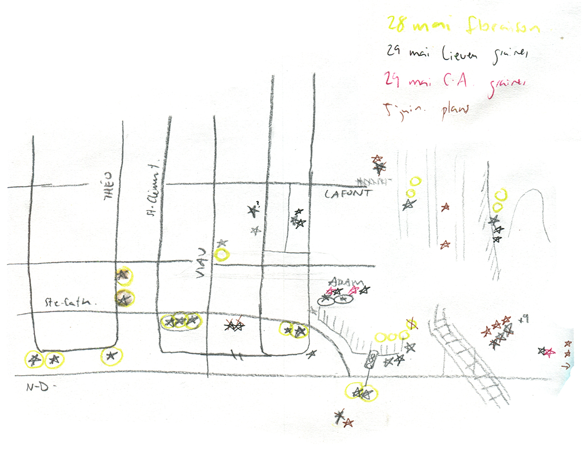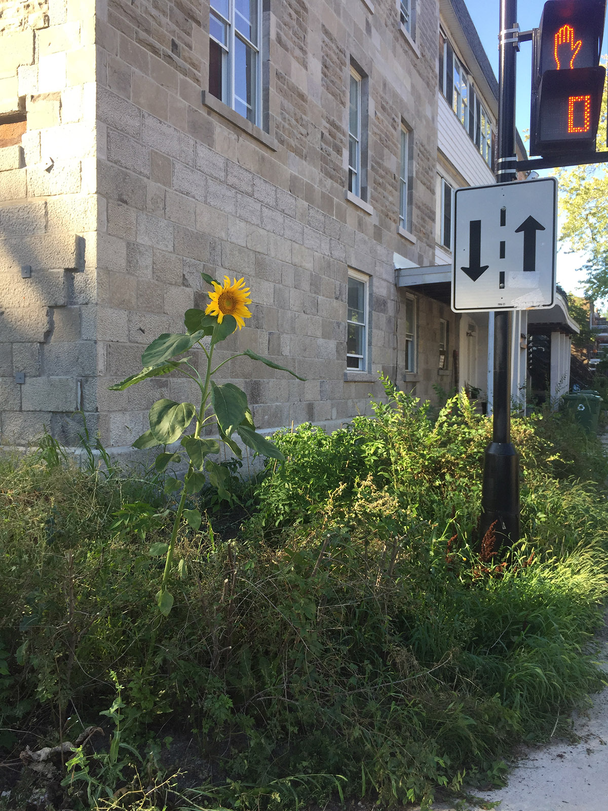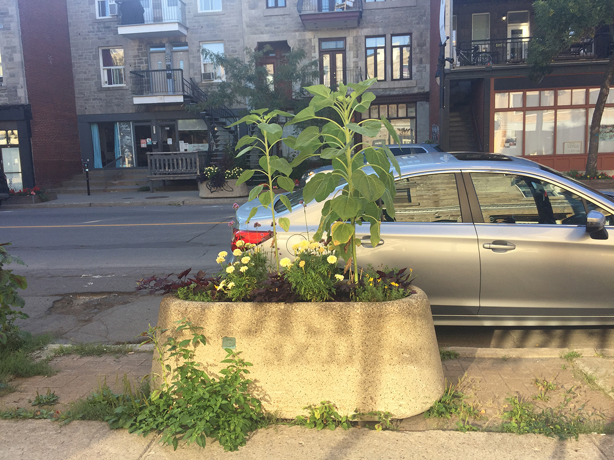 Sur notre balcon ; dans une ruelle verte ; dans les aménagements floraux des voisins ; au coin d’un arrêt d’autobus ; sur le bord de l’autoroute Notre-Dame ; dans un jardin communautaire ; dans une plate-bande municipale ; dans la plate-bande d’un restaurant ; ainsi qu’à plusieurs endroits dans un terrain industriel désaffecté près de chez nous.