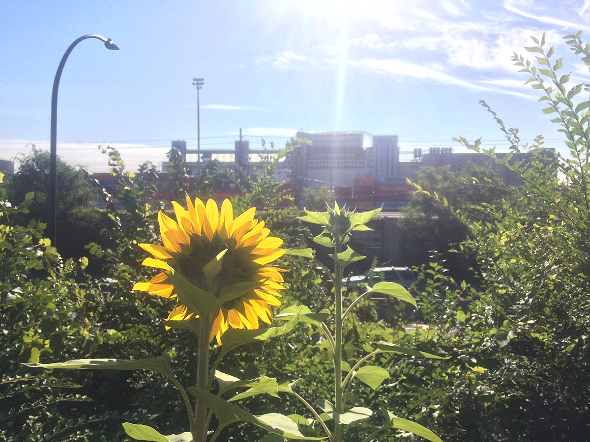 En mai, lorsque les dangers des gels nocturnes étaient passés, le duo d’artiste a procédé à une transplantation des tournesols. Les endroits ciblés pour les fleurs sont tous différents, et transgressent tous à leur façon, les limites de leur voisinage. Jusqu’à présent, les endroits où ont été plantés des tournesols sont: